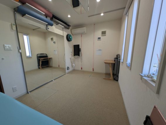 当院では、シュロス法、姿勢改善、体幹トレーニング、EMSで、一人一人にあわせた側弯症を改善させる運動療法を行っています。完全個室で、落ち着いて運動していただけます。ご家族の方はそばで見ていただけます。鏡やモニターで自分の体がどうなっているのか見ながら運動をしていただけますので、自分のよい姿勢を自分で見ていただけます。
