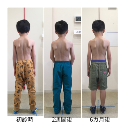 装具を外したときに時間とともに矯正されたコブ角が戻ってしまうことが報告されています(5)。装具と運動をともに行うことで、装具によって改善された姿勢を自分の筋力で保つよう運動療法を一緒に行うことが大切です。(8)手術を行うのでも、少しでも固定範囲を狭くできるようその前に運動療法を行うことはとても重要な事です。
